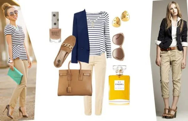 Итак, запомните: сочетайте бежевые брюки длиной 7/8, которые вы можете, с облегающими рубашками без рукавов, которые будут заправлены; блузками на выход; классическими рубашками, однотонными или с рисунком в полоску; а если у вас идеальный силуэт, вы можете позволить себе даже топ. Обязательно наденьте поверх него кожаную куртку.