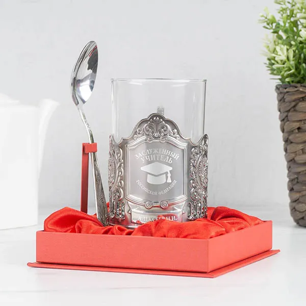 - Заварной чайник с подогревом на подставке – желательно, чтобы на нем была гравировка с именем, отчеством учителя.