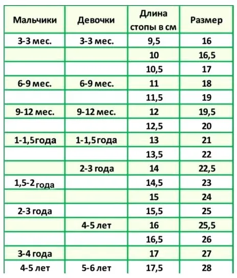 Если вы не можете измерить ступни вашего ребенка, вы можете воспользоваться таблицей размеров.