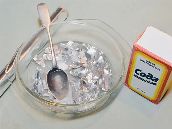Еще один способ очистки в домашних условиях — использование фольги. Он содержит алюминий, который начинает реагировать с составляющими серебра, и чернота начинает исчезать. В качестве примера рассмотрим два метода.