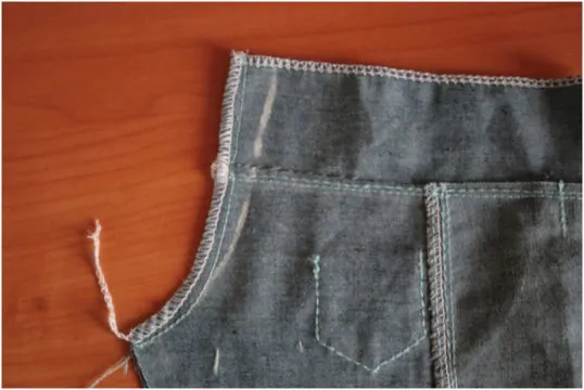 - Сшейте прочной хлопковой нитью, прогладьте шов горячим утюгом и отрежьте излишки материала, оставив 1 см по краю шва. Это уменьшит длину талии джинсов на 3-4 см, но не более.