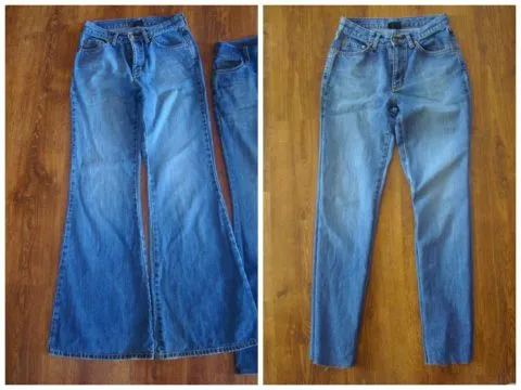 В отличие от обычной реконструкции брюк, конверсия представляет собой небольшую проблему. Жесткие материалы, многочисленные заклепки, гвозди, ярлыки и декоративные двойные швы с контрастными нитками значительно усложняют задачу. Однако основная техника одинакова.