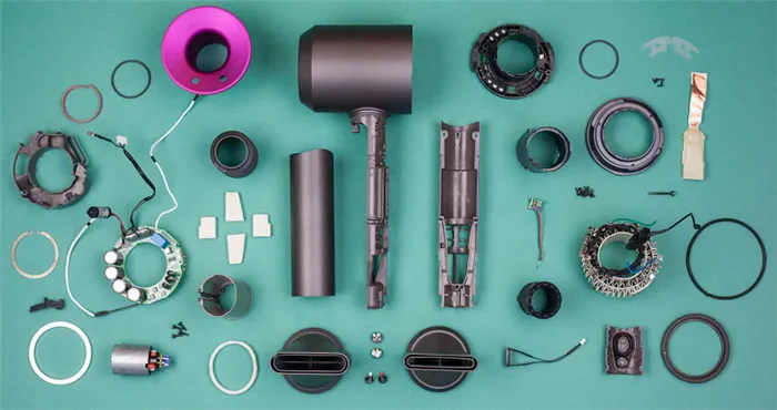 Основными элементами, как можно легко догадаться, являются вентилятор и нагревательный элемент. Это зависит от скорости потока воздуха, который может пройти через фен в единицу времени, и скорости, с которой этот воздух нагревается (и, следовательно, его температуры на выходе).