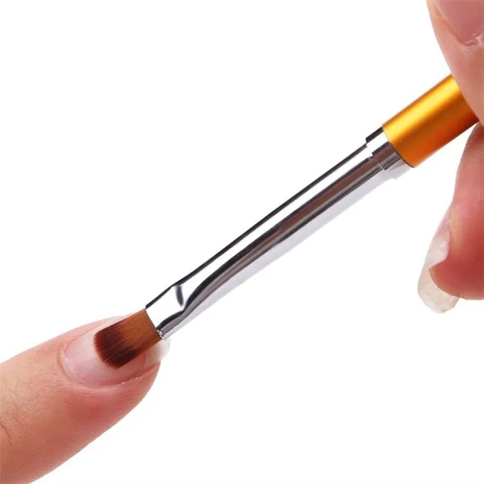 Срезанный кустарник. Это плоская кисть с углом 45 градусов. Он используется для создания прямых украшений, объемных изображений, тонких узоров и диагональных линий на ногтях. Угловая кисть подходит для французского маникюра. Можно также выбрать несколько цветов для создания замысловатых узоров.