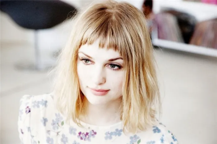 Этот вариант также не подходит для круглого лица, так как делает его форму еще более круглой. Более того, стилисты советуют обладательницам вьющихся волос воздержаться от такой прически, так как уложить такую челку будет крайне сложно: Они будут постоянно торчать и портить весь образ.