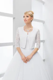 - Еще один универсальный выбор – болеро. Эти коротенькие кофточки надевают поверх платьев, топом или водолазок, они могут не только украсить наряд, но и скорректировать некоторые недостатки фигуры.