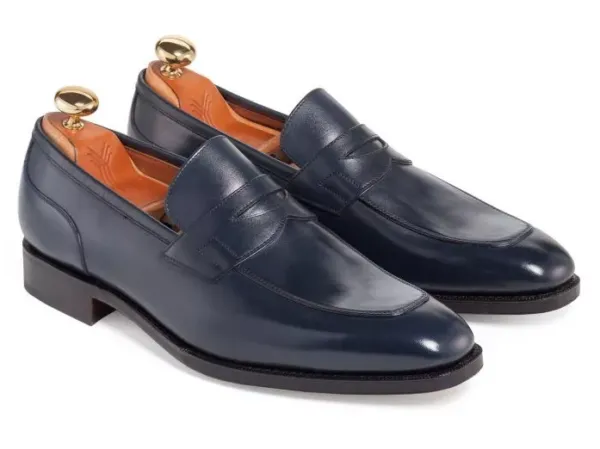Темно-синие мокасины более универсальны и менее пафосны.