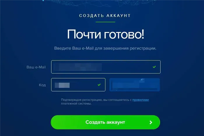 - Введите код подтверждения, который вы получили по электронной почте, и снова нажмите «Создать учетную запись»: