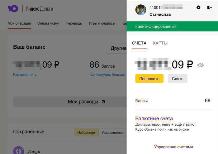 - кошелек, в котором вы можете хранить свои деньги. Без идентификации — до 15 тысяч рублей, после упрощенной идентификации Госуслуг — 60 тысяч рублей, после полной идентификации (Мегафон, Контакт, Связной или их собственные офисы) — до 600 тысяч рублей,