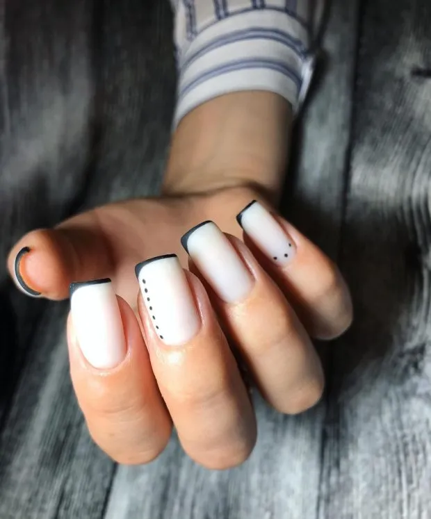 Если черный маникюр, который полностью закрывает ноготь, может выглядеть как-то неуместно или мрачно, то с французскими ногтями все происходит наоборот. Ведь мы покрываем темным цветом не всю тарелку, а только ее часть. Но если вы все еще не можете обойтись без традиционного для французского белого цвета, почему бы не сочетать ваши любимые цвета вместе!