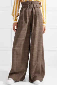 Брюки из простой шерсти имеют приятную текстуру и часто сочетаются с темно-коричневыми тонами. Их удобно сочетать с элегантными вещами, такими как шелковые и атласные блузки и топы, кожаные куртки и блейзеры.